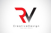 RV R V Konstrukcja logo literowego w kolorze białym.
