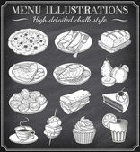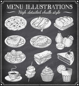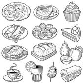 Zestaw wektorowy z ręcznie rysowanych potraw i napojów
