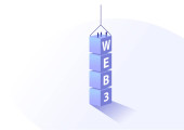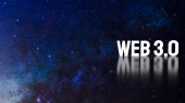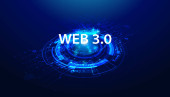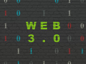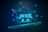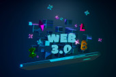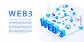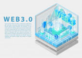 Ilustracja wektora izometrycznego Web 3.0. Koncepcja Internetu nowej generacji jako ciemne tło IT z efektem świetlnym.