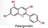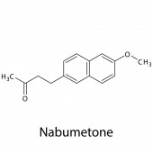 Struktura molekularna pelubiprofenu, płaska formuła chemiczna szkieletu. NLPZ lek stosowany w leczeniu reumatoidalnego zapalenia stawów, bólu, obrzęku, zapalenia kości i stawów. Ilustracja wektora.