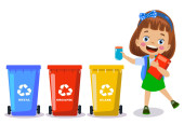 małe dziecko wyrzucić odpady metalowe do kosza na śmieci