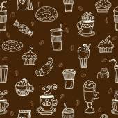 Zdjęcie "Klasyczny wzór bez szwu. Kreskówkowy napój, fasola i cezve pot. Śniadanie cappuccino espresso kubek bezgraniczny ozdoba. Liniowy wektor niekończący się projekt papier album album kawiarnia menu" może być wykorzystywane do celów osobistych i komercyjnych zgodnie z warunkami zakupionej licencji Royalty-free. Obraz jest dostępny do pobrania w jakości wysokiej rozdzielczości do 5760x3840.
