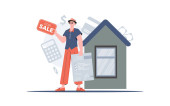 Zdjęcie "Kobieta stoi w pełnym rozwoju zajmuje się sprzedażą domu. Pośrednik. Płaski styl. Element prezentacji, miejsc. Ilustracja wektora" może być wykorzystywane do celów osobistych i komercyjnych zgodnie z warunkami zakupionej licencji Royalty-free. Obraz jest dostępny do pobrania w jakości wysokiej rozdzielczości do 5760x3840.