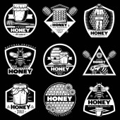 Projekt wektora o tematyce miodowej odpowiedni dla logo lub znaków towarowych w przedsiębiorstwach produkujących miód