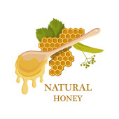 Projekt wektora o tematyce miodowej odpowiedni dla logo lub znaków towarowych w przedsiębiorstwach produkujących miód