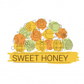 Projekt wektora o tematyce miodowej odpowiedni dla logo lub znaków towarowych w przedsiębiorstwach produkujących miód