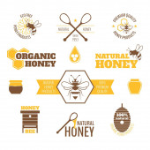Projekt wektora o tematyce miodowej odpowiedni dla logo lub znaków towarowych w przedsiębiorstwach produkujących miód