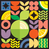 Zdjęcie "Minimalistyczna płaska rama wektorowa, symbol ikony owoców cytryny. Prosta geometryczna ilustracja cytrusów, pomarańczy, lemoniady i liści. Abstrakcyjny projekt na czarnym tle. Dla przestrzeni kopiowania, social media postów." może być wykorzystywane do celów osobistych i komercyjnych zgodnie z warunkami zakupionej licencji Royalty-free. Obraz jest dostępny do pobrania w jakości wysokiej rozdzielczości do 5760x3840.
