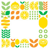 Minimalistyczna płaska rama wektorowa, symbol ikony owoców cytryny. Prosta geometryczna ilustracja cytrusów, pomarańczy, lemoniady i liści. Abstrakcyjny projekt na czarnym tle. Dla przestrzeni kopiowania, social media postów.