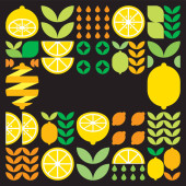 Streszczenie ilustracji ikony symbolu cytryny owocowej. Prosta sztuka wektorowa, geometryczna ilustracja kolorowych cytrusów, pomarańczy, limonek, lemoniady i liści. Minimalistyczny płaski nowoczesny design na białym tle.