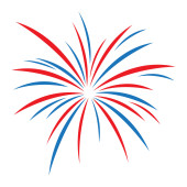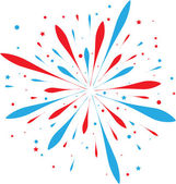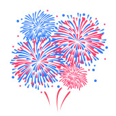 Wzór fajerwerków w tle. Jasnoniebiesko-czerwone fajerwerki odizolowane na białym tle w prostym, nowoczesnym stylu. Dzień Niepodległości Ameryki.
