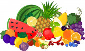 Vector illustration of fruits and vegetables isolated on white