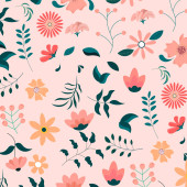 Estetyczny Współczesny drukowany bezszwowy wzór z wiosennym wzorem botanicznym. Dekoracyjny tulipan, kwiaty i liście. Pastelowe tło boho w minimalistycznym stylu połowy wieku do tkanin, tapet lub opakowań.