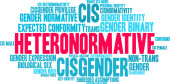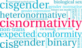 Cisnormativity słowo chmura na białym tle.
