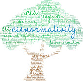 Cisnormativity słowo chmura na białym tle.