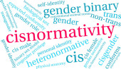 Cisnormativity słowo chmura na białym tle.