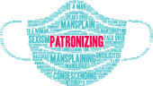 Protekcjonalna chmura słów na białym tle.