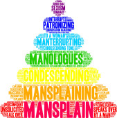 Protekcjonalna chmura słów na białym tle.