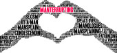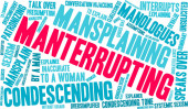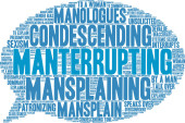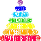 Protekcjonalna chmura słów na białym tle.