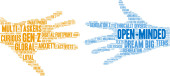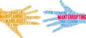 Protekcjonalna chmura słów na białym tle.