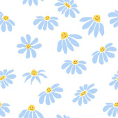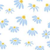 Świetna stokrotka retro bezszwowy wzór. Ozdoba hipisowska z lat 70. Tapeta kwiatowa