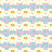 Zdjęcie "Świetna stokrotka retro bezszwowy wzór. Ozdoba hipisowska z lat 70. Tapeta kwiatowa" może być wykorzystywane do celów osobistych i komercyjnych zgodnie z warunkami zakupionej licencji Royalty-free. Obraz jest dostępny do pobrania w jakości wysokiej rozdzielczości do 5760x3840.