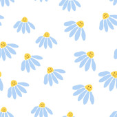Świetna stokrotka retro bezszwowy wzór. Ozdoba hipisowska z lat 70. Tapeta kwiatowa