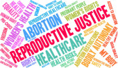 Sprawiedliwość reprodukcyjna słowo chmura na białym tle.