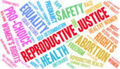 Sprawiedliwość reprodukcyjna słowo chmura na białym tle.