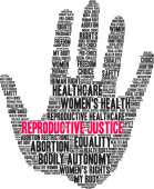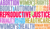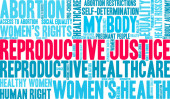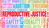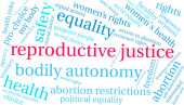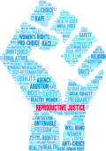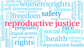 Sprawiedliwość reprodukcyjna słowo chmura na białym tle.
