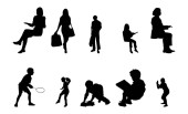 Sylwetki wektorowe, zarys sylwetek osób, rysunek konturu, sylwetka osób, Ikona Odizolowana, Sylwetka siedzących, Zestaw architektoniczny