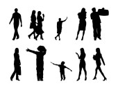 Sylwetki wektorowe, zarys sylwetek osób, rysunek konturu, sylwetka osób, Ikona Odizolowana, Sylwetka siedzących, Zestaw architektoniczny