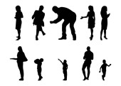 Sylwetki wektorowe, zarys sylwetek osób, rysunek konturu, sylwetka osób, Ikona Odizolowana, Sylwetka siedzących, Zestaw architektoniczny