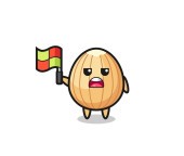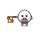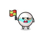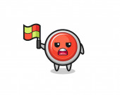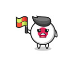 saw blade character as line judge putting the flag up , cute design