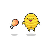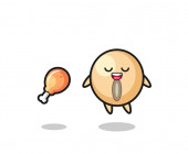 cute saw blade floating and tempted because of fried chicken , cute design
