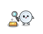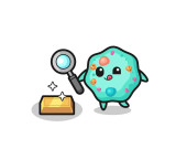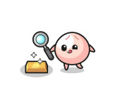 speech bubble character is checking the authenticity of the gold bullion , cute design