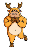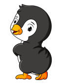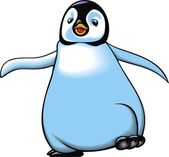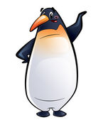 Człowiek w stroju pingwina stoi i jest bardzo szczęśliwy z ilustracji