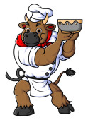 Człowiek w kostiumie byka jest podekscytowany i szczęśliwy z ilustracji