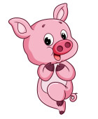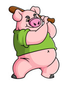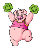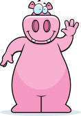 Szczęśliwy człowiek w kostiumie świni macha ręką i wita ilustrację.
