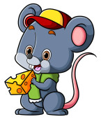 Człowiek w kostiumie myszy kradnie wielki ser ilustracji.