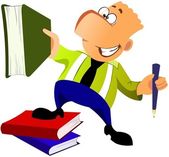 Staruszek trzyma dużo książek i chodzi z duchem ilustracji.