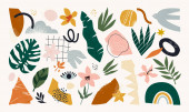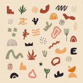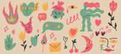 Duży zestaw różnych rysunków, zwierząt i roślin, bazgroły i obiekty w stylu boho. Zbiór kolorowych ikon wektorowych. Konstrukcja płaska, kreskówka.