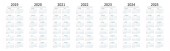 Zdjęcie "Szablon kalendarza w kolorze białym. Kalendarz na lata 2022, 2023 i 2024. Tydzień zaczyna się w poniedziałek. " może być wykorzystywane do celów osobistych i komercyjnych zgodnie z warunkami zakupionej licencji Royalty-free. Obraz jest dostępny do pobrania w jakości wysokiej rozdzielczości do 5760x3840.