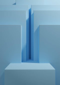 Jasny, pastelowy, baby blue Wyświetlacz 3D produktu na podium lub stojak z abstrakcyjną ceglaną ścianą lub portalem do fotografii produktu minimalna, prosta, geometryczna tapeta tła, do luksusowych produktów grunge