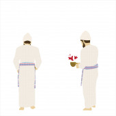 Zdjęcie "Dodatkowa oferta Rosz Chodesh. Obraz Cohena rzuca ofiarę na ołtarz Swing miskę i od niego kawałki wołowiny latające w górę Kolorowy wektor rysunku działalności w Świątyni Żydowskiej" może być wykorzystywane do celów osobistych i komercyjnych zgodnie z warunkami zakupionej licencji Royalty-free. Obraz jest dostępny do pobrania w jakości wysokiej rozdzielczości do 5760x3840.