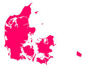Wysoka szczegółowa fioletowa mapa Danii na odizolowanym tle, ilustracja wektorowa EPS 10