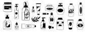 Zdjęcie "Opakowanie organiczne. Ręcznie rysowane produkty kosmetyczne i pielęgnacja skóry naturalne leczenie, butelki szklane, rurki papierowe i szklane słoiki. Wektorowy płyn do szorowania i zestaw szamponów. Pojemniki ze śmietaną, olejem" może być wykorzystywane do celów osobistych i komercyjnych zgodnie z warunkami zakupionej licencji Royalty-free. Obraz jest dostępny do pobrania w jakości wysokiej rozdzielczości do 5760x3840.