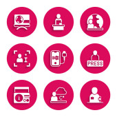 Set Breaking news News on radio channel Microphone Censored stamp Radar Information and Mobile recording icon. Vector.