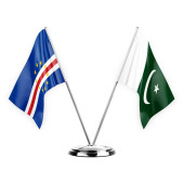Cape Verde and Pakistan Flags Crossed And Waving Flat Style. Official Proportion. Correct Colors.