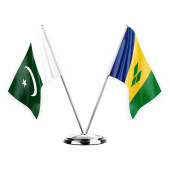 Gabon and Pakistan Flags Crossed And Waving Flat Style. Official Proportion. Correct Colors.